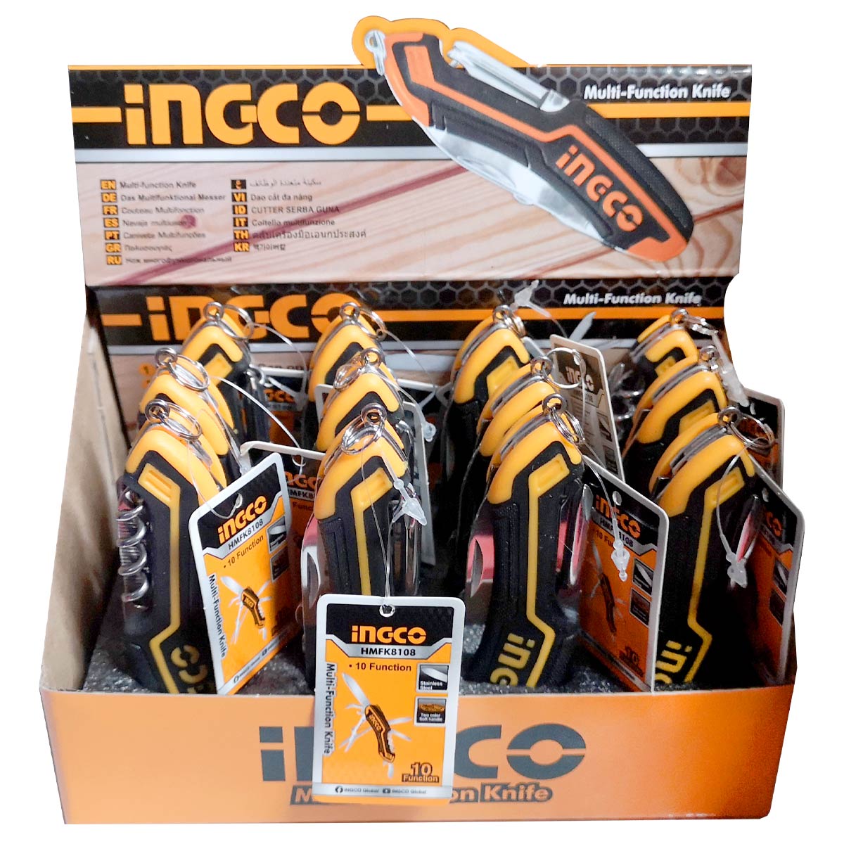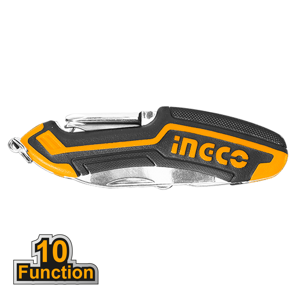 Λεπτομέρειες προϊόντοςΚλειστό μέγεθος 95mm Λειτουργίες: 1. Μαχαίρι 2. Ανοιχτήρι κονσερβών 3. Ανοιχτήρι μπουκαλιών 4. Ψαλίδι 5. Κατσαβίδι ίσιο 6. Κατσαβίδι σταυρού 7. Τιρμπουσόν 8. Λίμα νυχιών 9. Καθαριστής νυχιών 10. Χαλκάς κλειδιών