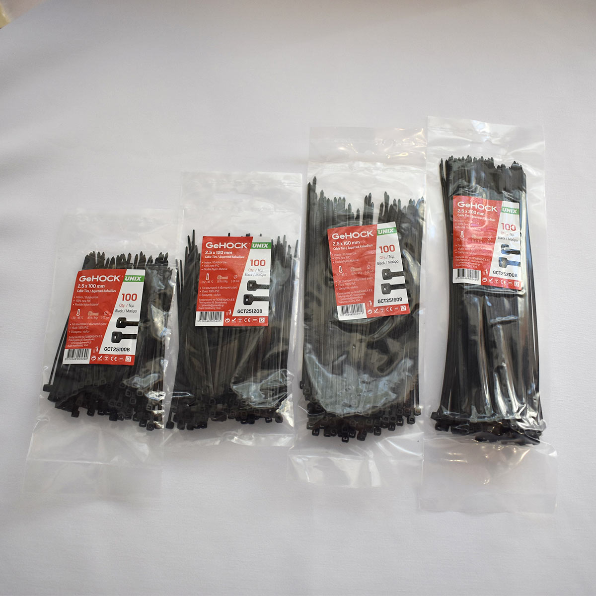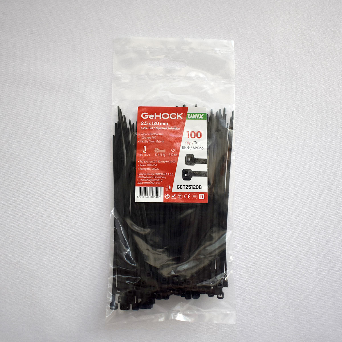 Λεπτομέρειες προϊόντοςΙδανικά για να οργανώσουν τον χώρο σας, βάζοντας σε τάξη καλώδια, σωλήνες κλπ. Κατάλληλα για εύκολη και γρήγορη στερέωση καλωδίων σε εξωτερικές ή σε εσωτερικές εγκαταστάσεις. Προϊόν υψηλής ποιότητας με όλες τις πιστοποιήσεις Αντοχή σε δύσκολες καιρικές συνθήκες και σε θερμοκρασίες από -35°C έως +85°C. Αντοχή σε δύναμη / βάρος: 780N / 80kg, ανάλογα με το μέγεθος Καλύπτει διαμέτρους από 10 έως 220mm, ανάλογα με το μέγεθος Κωδικός GeHOCK: GCT25120B