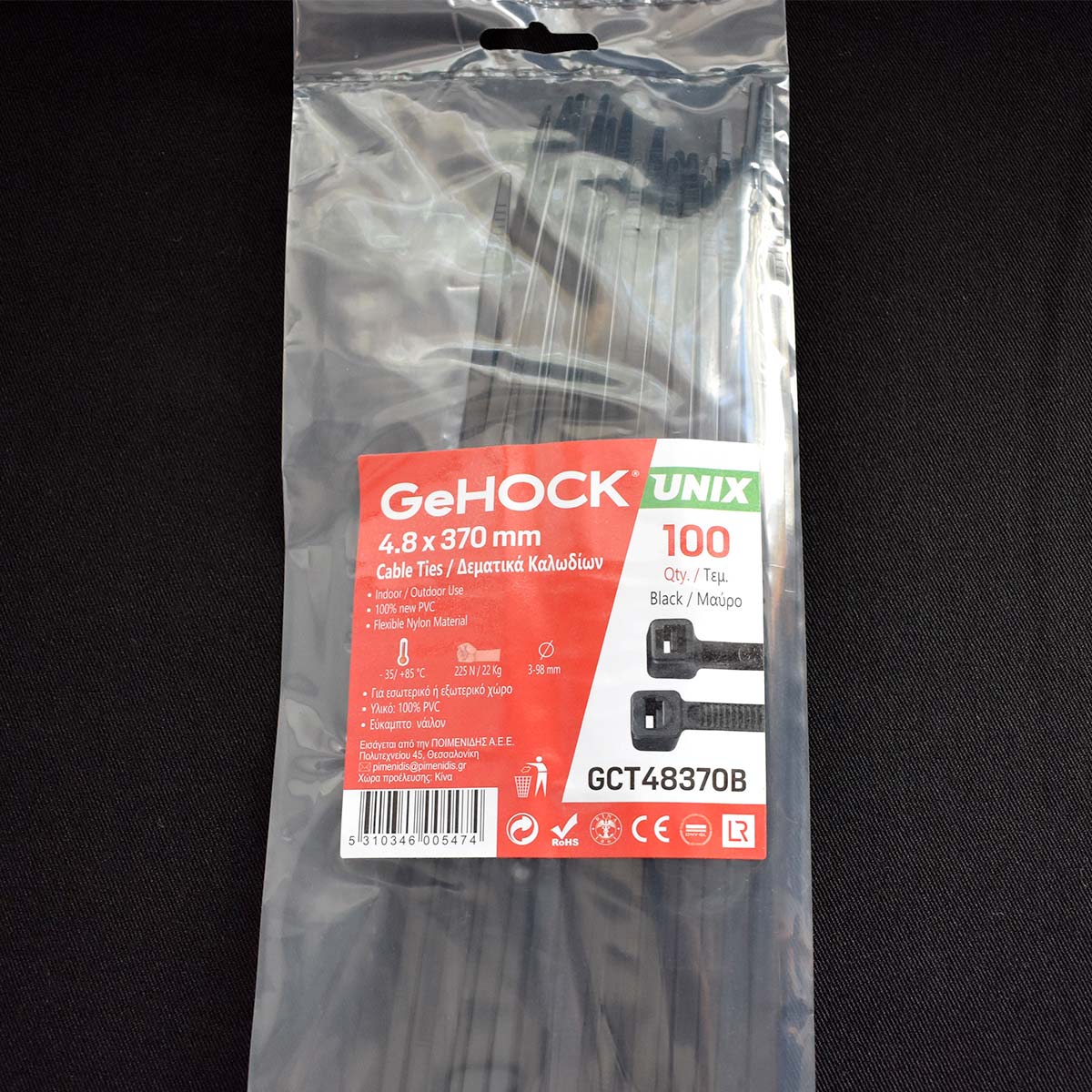Δεματικά σε Μαύρο Χρώμα 4.8x370mm 100 τεμ. GeHOCK