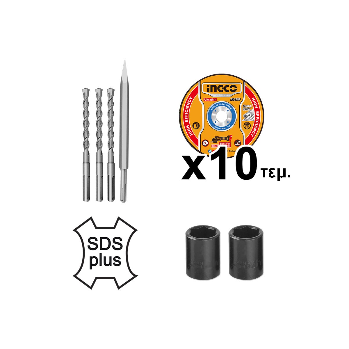 Λεπτομέρειες προϊόντος1. Δραπανοκατσάβιδο Μπαταρίας (CDLI200528): Ταχύτητα χωρίς φορτίο 0-400/0-1500rpm Ροπή 45 Nm Ρυθμίσεις ροπής 15+1 Υποδοχή τσοκ 0.8-10mm Led λάμπα εργασίας Βάρος: 1.00 kg 2. Κρουστικό Μπουλονόκλειδο Μπαταρίας (CIWLI2038): Ταχύτητα 0-1300/0-2100rpm Κρούσεις 0-2000/0-3300ipm Ροπή 300 Nm Υποδοχή 1/2" Brushless Motor (μοτέρ χωρίς καρβουνάκια) Βάρος: 1.00 kg 3. Πιστολέτο Περιστροφικό Κρουστικό Σκαπτικό Μπαταρίας (CRHLI20228): Ταχύτητα 0-1100rpm Κρούσεις 0-5000bpm Κρουστική ισχύς 2.5J Τσοκ SDS plus, Μέγεθος τρυπανιού έως Φ 26mm. Led λάμπα εργασίας Brushless Motor (μοτέρ χωρίς καρβουνάκια) Βάρος: 2.65 kg 4. Γωνιακός Τροχός Μπαταρίας(CAGLI201158): Ταχύτητα κοπής 8500rpm Ταχύτητα λείανσης 3000rpm Διάμετρος δίσκου Φ 115mm Άξονας M14 Brushless Motor (μοτέρ χωρίς καρβουνάκια) Βάρος: 1.20kg 5. Φακός Προβολέας Μπαταρίας (CWLI2023): Ισχύς 1.5W Φωτεινή ροή (φωτεινότητα) 150±10% lumen Κεφαλή πολλαπλών θέσεων Βάρος: 0.80kg +ΔΩΡΟ Εργαλειοθήκη Τσάντα με Ρόδες 20" Υλικό: 1680D πολυεστέρας Διαστάσεις 45 x 28 x 36cm Θέση για μετροταινία Πολλές εσωτερικές και 5 εξωτερικές τσέπες για εργαλεία Σχεδίαση κλειστής δομής Τηλεσκοπική λαβή έλξης Ενισχυμένος άκαμπτος πλαστικός πάτος για προστασία από βρεγμένες επιφάνειες. Μέγιστο φορτίο 20 kg