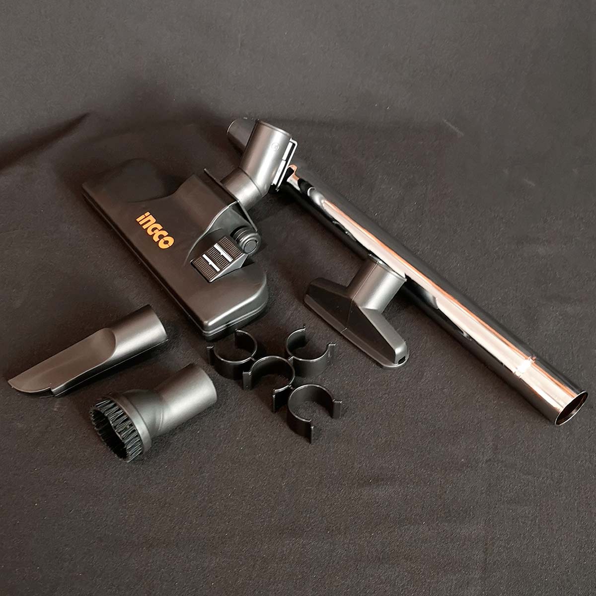 Περιεχόμενα συσκευασίας1 τεμ. Εύκαμπτος σωλήνας με μήκος 1.5 m, 1 τεμ. Πτυσσόμενος μεταλλικός σωλήνας 80cm, 1 τεμ. Βούρτσα δαπέδου, 1 τεμ. Βούρτσα καθαρισμού, 1 τεμ. Ακροφύσιο, 1 τεμ. Φίλτρο HEPA.
