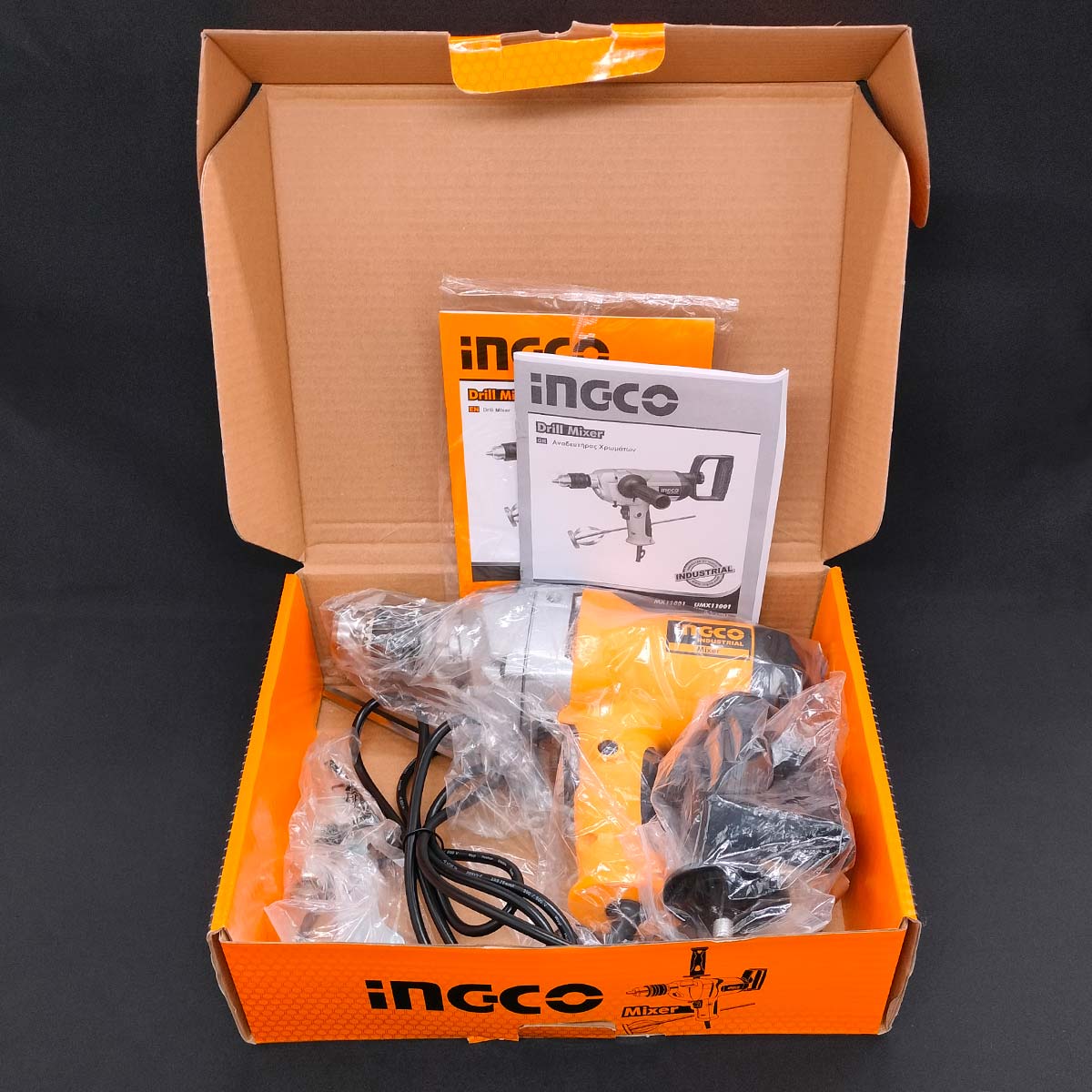 Περιεχόμενα συσκευασίας2 τεμ. Χειρολαβές 1 τεμ. Αναδευτήρας (Εξάρτημα) Φ 57 x 350mm 1 τεμ. Κλειδί τσοκ