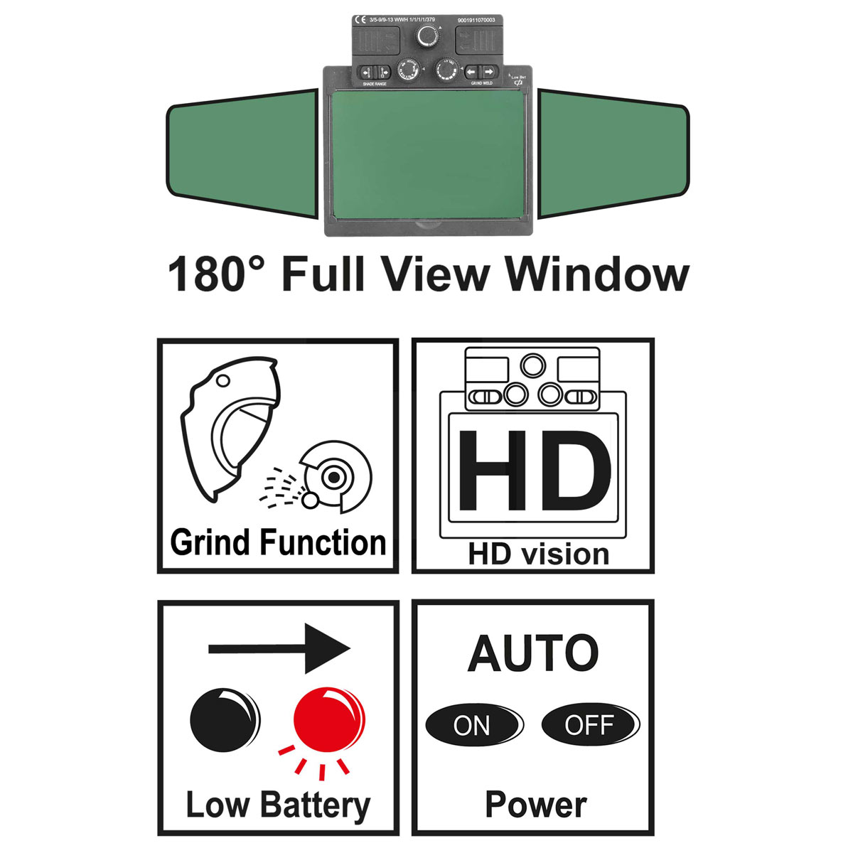 Λεπτομέρειες προϊόντοςΑυτόματη σκίασημε 4 αισθητήρες Διάσταση οπτικού πεδίου 100 x 67mm Κατάσταση ανενεργής σκίασης DIN 3 Κατάσταση ενεργής σκίασης από DIN 5-9 και 9-13 UV/IR προστασία πάνω από DIN 16 Χρόνος σκίασης / φωτός: • από το φως στο σκοτάδι <0.04ms • από το σκοτάδι στο φως 0.15-0.80s αυτόματη απενεργοποίηση Ρυθμίσεις σκίασης εσωτερική και με διαβαθμίσεις Ρύθμιση ευαισθησίας εσωτερική και με διαβαθμίσεις Για μηχανές TlG amps ?2 amps Τροφοδοσία ηλιακός συλλέκτης και 2 τεμ μπαταρίες CR2032 Li-Ion