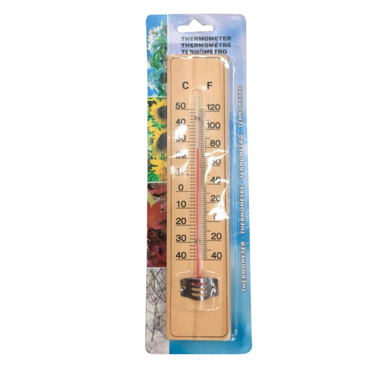 Λεπτομέρειες προϊόντοςΞύλινο θερμόμετρο περιβάλλοντος Κλίμακες °C και °F Ιδανικό για εσωτερικούς και εξωτερικούς χώρους.