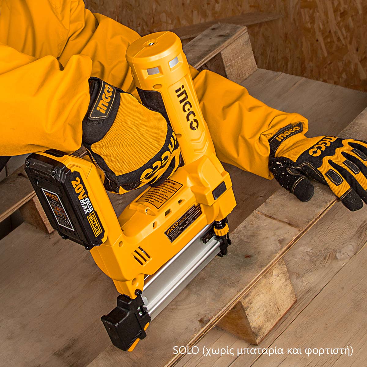 Λεπτομέρειες προϊόντοςSOLO (χωρίς μπαταρία και φορτιστή). Χωρητικότητα καρφιών 100τεμ Μέγεθος καρφιού 15-50mm σειρά 18GA Ρύθμιση του βάθους της εισχώρησης του καρφιού. Φόρτωση γεμιστήρα: Οπίσθια Διαδοχική λειτουργία για ακρίβεια και λειτουργία ενεργοποίησης με επαφή για γρήγορη στερέωση. Προστασία από ακούσια ενεργοποίηση εργαλείου. ~ 1.300 καρφιά χρησιμοποιώντας μια μπαταρία 2.0Αh Ένδειξη άδειου γεμιστήρα καρφιών.
