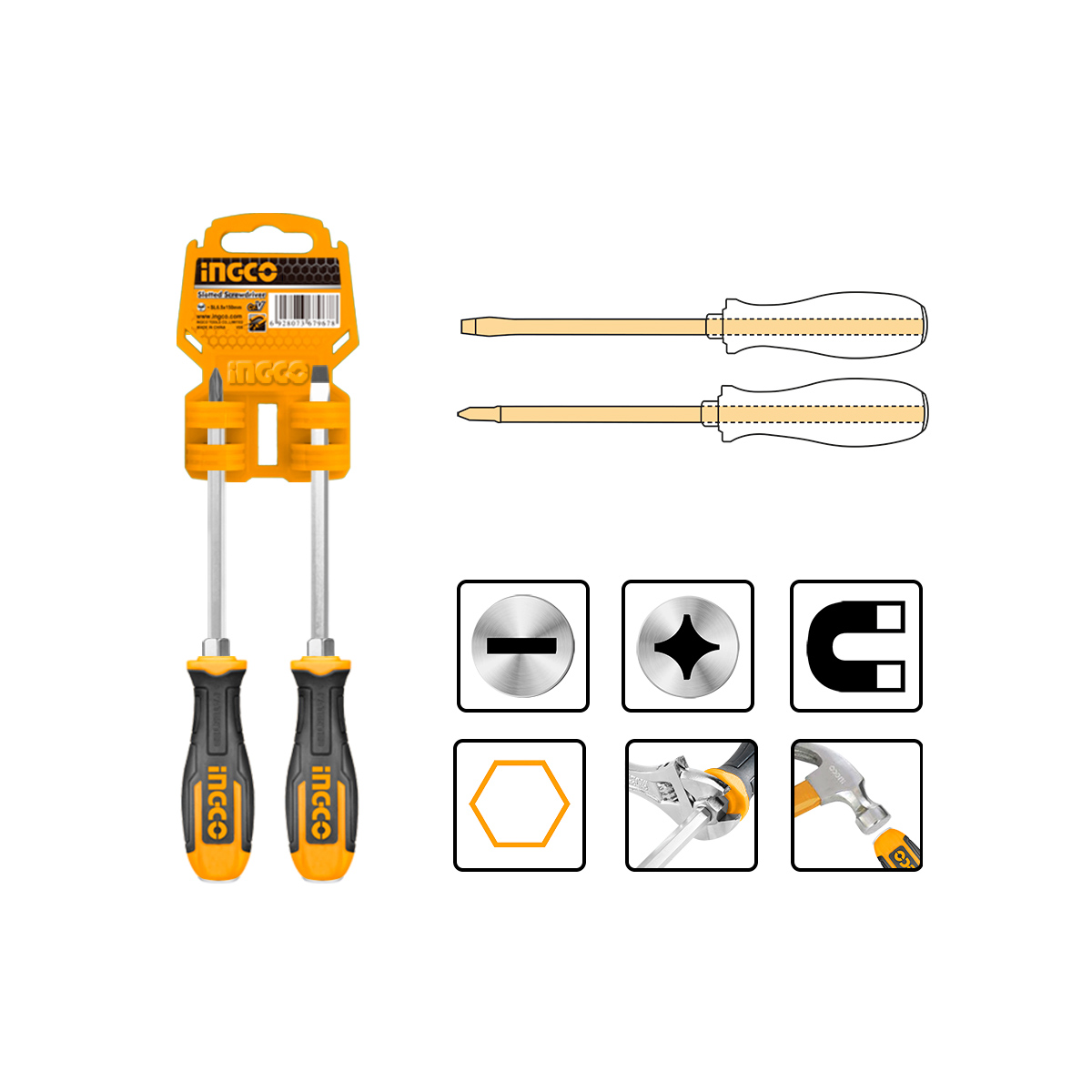 Λεπτομέρειες προϊόντοςΕξάγωνο στέλεχος Κατσαβίδι κατάλληλο για χτύπημα, εξαιτίας της μεταλλικής κεφαλής