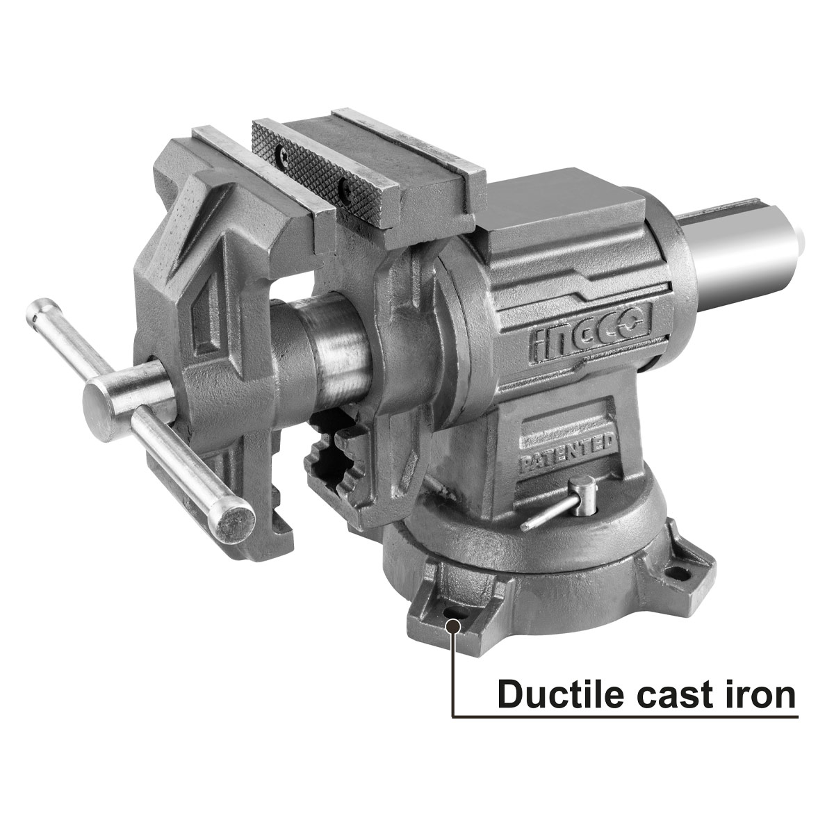 Λεπτομέρειες προϊόντοςΠεριστρεφόμενη βάση 360 μοιρών, Περιστρεφόμενη κεφαλή 360 μοιρών, Με αμόνι, Προστατευτικά σιαγώνων. Λειτουργεί και σαν μέγγενη σωλήνων.