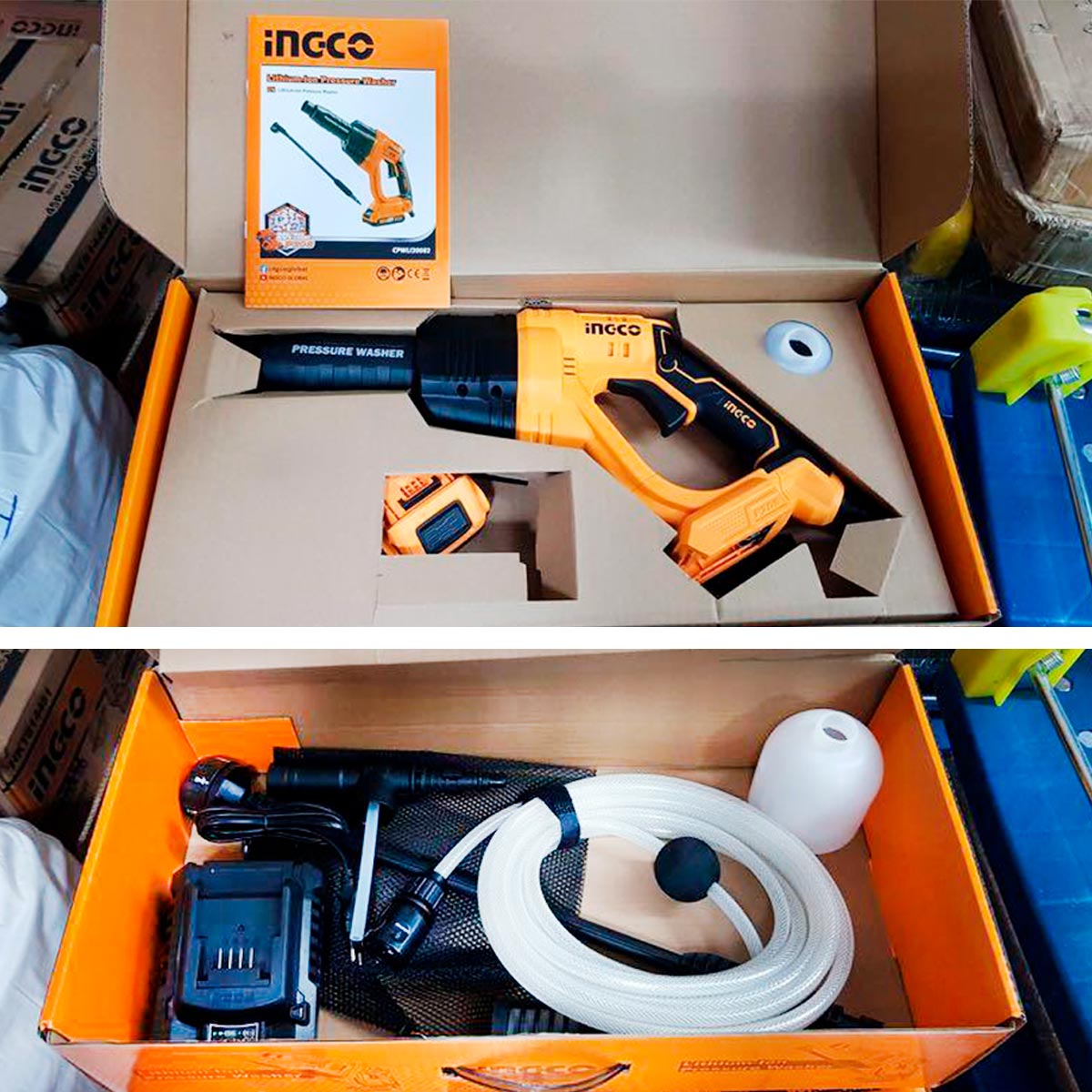 Περιεχόμενα συσκευασίας1 τεμ Φορτιστή 1 ώρας 1 τεμ Μπαταρία 20V 2.0Ah Li-Ion 1 τεμ. Εκτοξευτή – πιστόλι απορρυπαντικού 400ml 1 τεμ. Εκτοξευτή – πιστόλι νερού με ρύθμιση 6 θέσεων 1 τεμ. Λάστιχο αναρρόφησης 6m με αυτόματο κούμπωμα 1 τεμ. Θήκη μεταφοράς