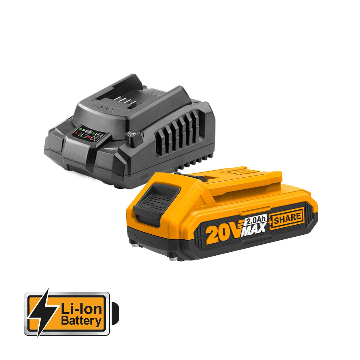 Περιεχόμενα συσκευασίας1 τεμ. Φορτιστή 1 ώρας, 1 τεμ. Μπαταρία 20V 2.0Ah Li-Ion, 1 τεμ. Αλυσοπρίονο κεφαλή, 1 τεμ. Μπορντουροψάλιδο κεφαλή.