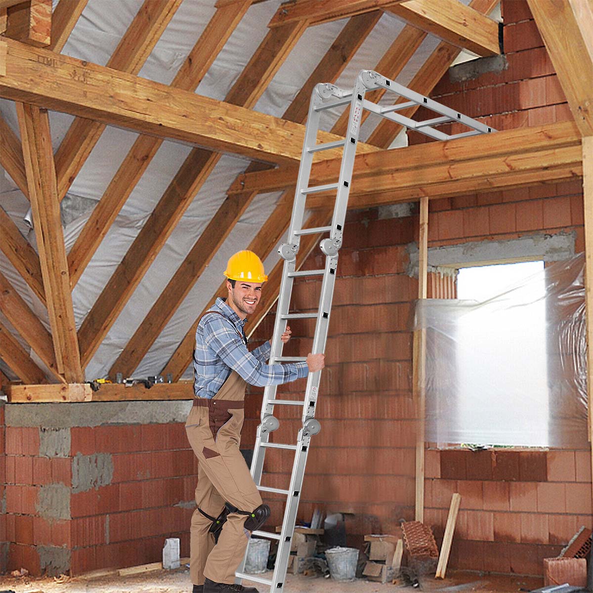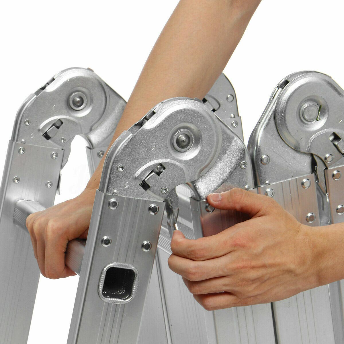 Λεπτομέρειες προϊόντοςΗ πολυμορφική σκάλα (ακροβάτης), χάρη στις πολλές μορφές που μπορεί να πάρει, είναι λειτουργική ακόμη και στα πιο δύσκολα σημεία. Αναδιπλούμενη για την μεταφορά και αποθήκευσή της. Μπάρα ισορροπίας στη βάση Συνολικό ύψος ανοικτή 4.75m 'Ύψος σε θέση Λ 2.30m 'Ύψος σε κλειστή θέση 1.26m Πλάτος σκάλας 38cm Απόσταση σκαλοπατιών 28cm Μέγιστο φορτίο 150kg Σκαλοπάτια 4 x 4 (σε ανοικτή θέση 16) Με 6 μεγάλους μεντεσέδες ασφαλείας
