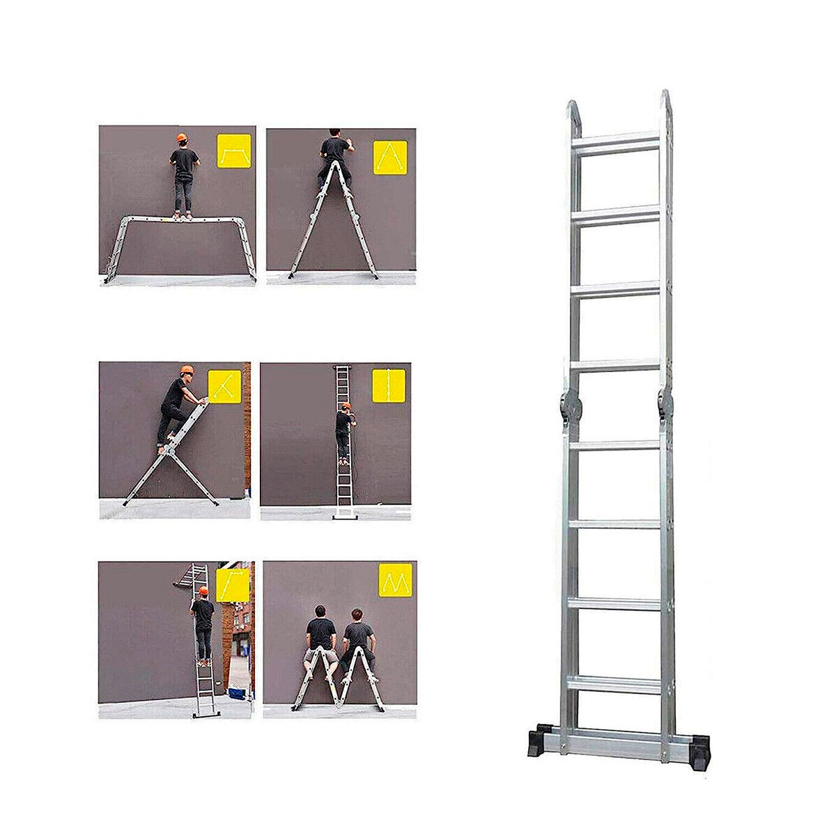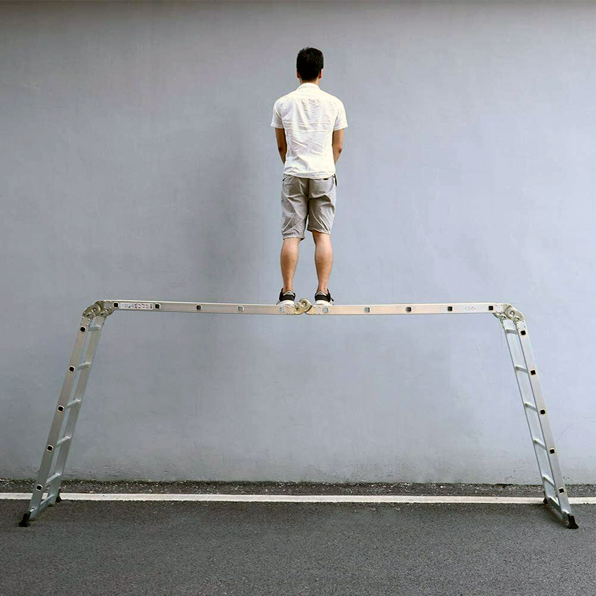 Λεπτομέρειες προϊόντοςΗ πολυμορφική σκάλα (ακροβάτης), χάρη στις πολλές μορφές που μπορεί να πάρει, είναι λειτουργική ακόμη και στα πιο δύσκολα σημεία. Αναδιπλούμενη για την μεταφορά και αποθήκευσή της. Μπάρα ισορροπίας στη βάση Συνολικό ύψος ανοικτή 5.80m 'Ύψος σε θέση Λ 2.80m 'Ύψος σε κλειστή θέση 1.54m Πλάτος σκάλας 38cm Απόσταση σκαλοπατιών 28cm Μέγιστο φορτίο 150kg Σκαλοπάτια 4 x 5 (σε ανοικτή θέση 20) Με 6 μεγάλους μεντεσέδες ασφαλείας