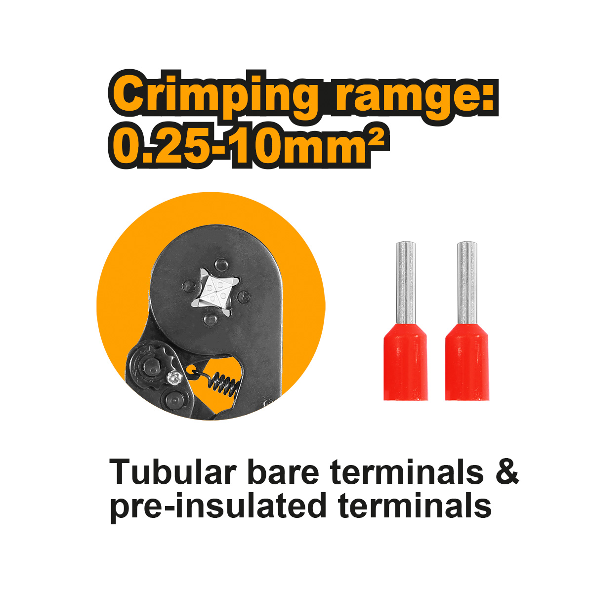 Λεπτομέρειες προϊόντοςΚατάλληλο για διστομές 0.25 – 10mm2 Απογύμνωση καλωδίων 7-23AWG Η δύναμη πίεσης μπορεί να ρυθμιστεί, κατάλληλη για διάφορους ακροδέκτες.