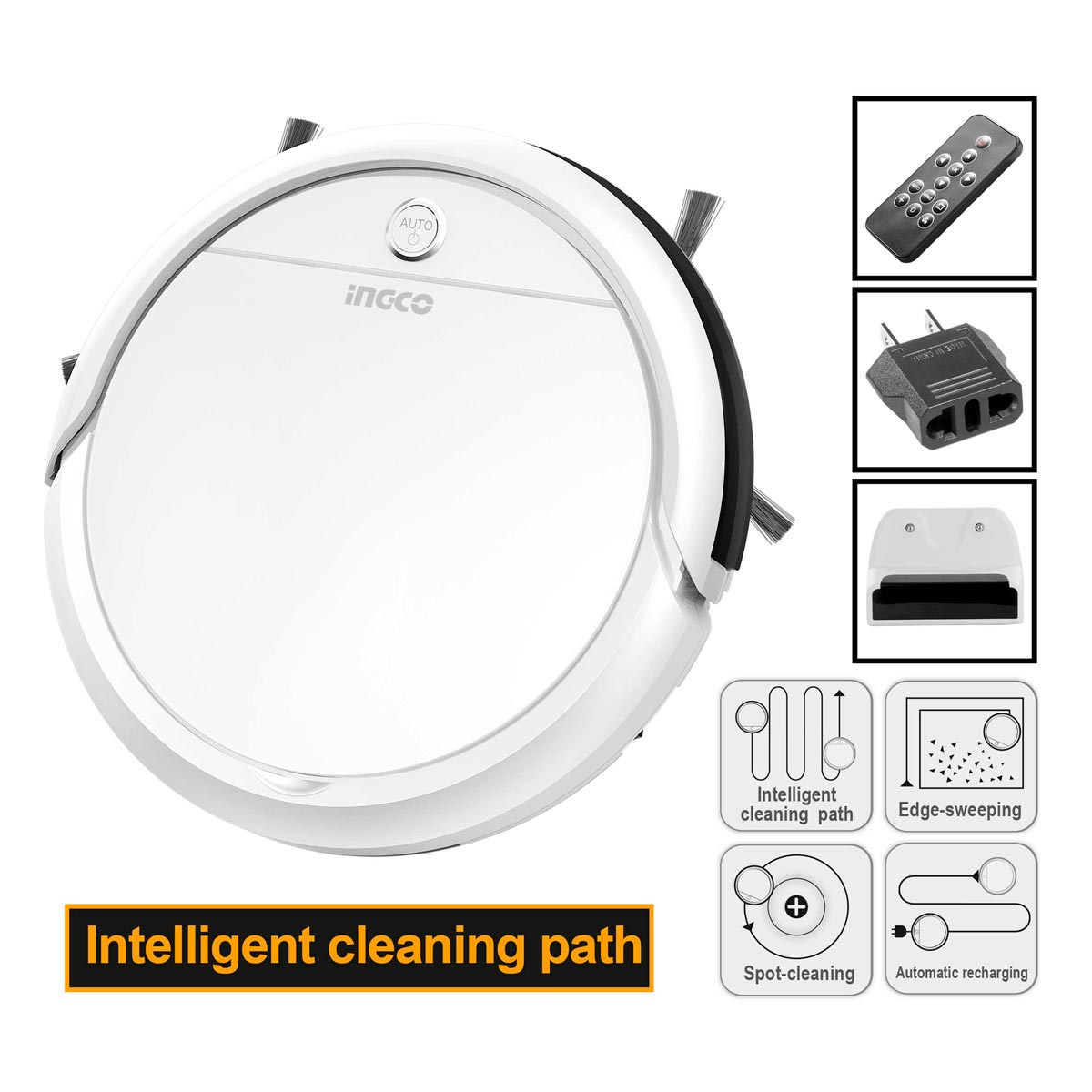 Περιεχόμενα συσκευασίας1 τεμ. Μπαταρία 2000mAh Li-Ion μη αποσπώμενη, 1 τεμ. Βάση φορτιστή 3-5 ωρών (με αυτόματη επαναφόρτιση), 1 τεμ. Τηλεχειριστήριο, 1 τεμ. Βούρτσα καθαρισμού, 4 τεμ. Πλαϊνές βούρτσες, 1 τεμ. Φίλτρο HEPA.