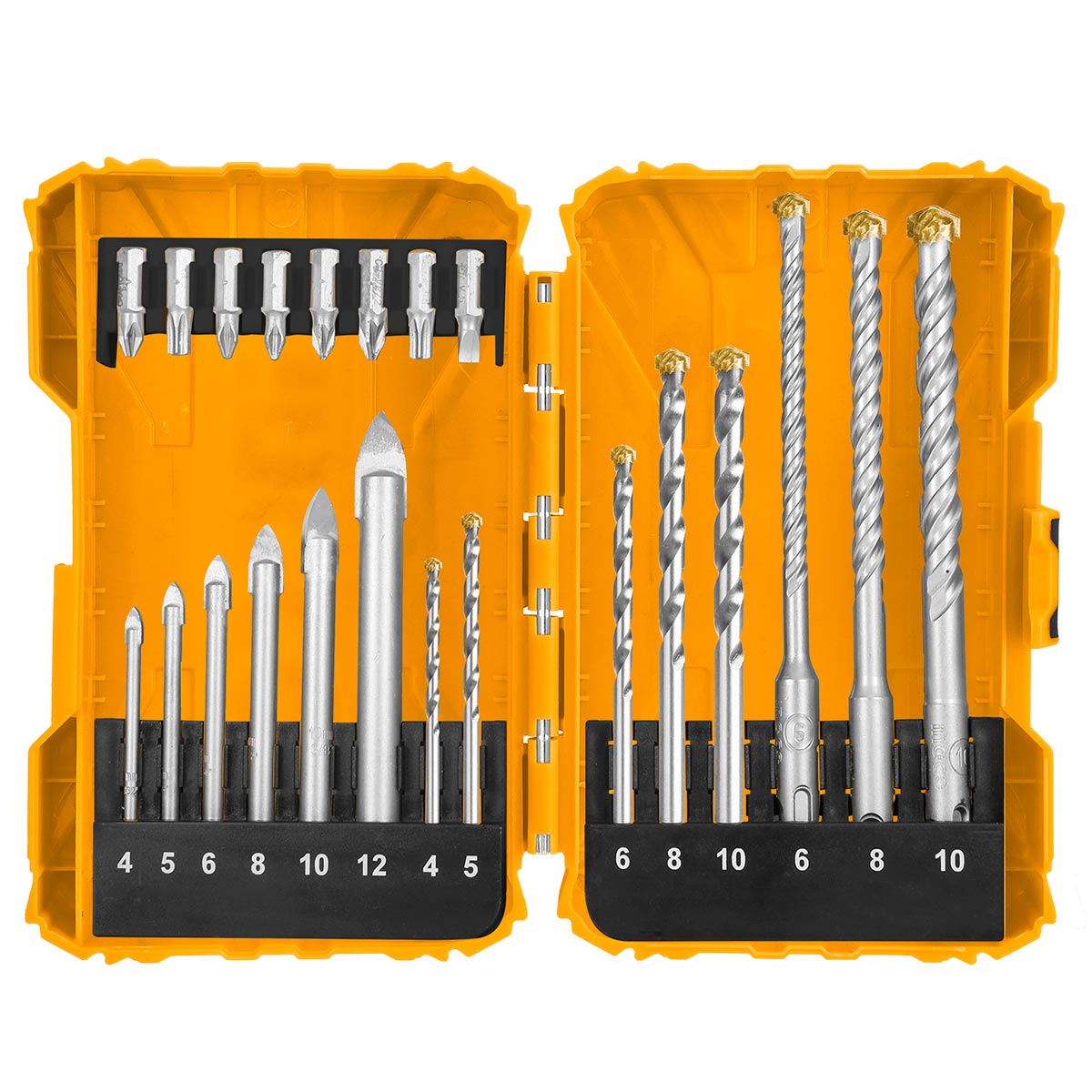 Περιεχόμενα συσκευασίαςΤρυπάνια Μικτά Σετ 16 τεμ. (AKDL11601) 6 τεμ Τρυπάνια μετάλλου: 2,3,4,5,6,8mm 5 τεμ Τρυπάνια μπετού: 4,5,6,8,10mm 5 τεμ Τρυπάνια ξύλου: 4,5,6,8,10mm Πλαστική διπλή κασετίνα Μύτες και Τρυπάνια Μικτά Σετ 22 τεμ. (AKDL12201) 8 τεμ Μύτες 25mm 6 τεμ Τρυπάνια γυαλιού: 4,5,6,8,10,12mm 5 τεμ Τρυπάνια μπετού: 4,5,6,8,10mm 3 τεμ Τρυπάνια SDS Plus: 6x160mm,8x160mm,10x160mm Πλαστική διπλή κασετίνα Μύτες Impact Σετ 50 τεμ. (AKDL25002) 32 τεμ Μύτες 25mm: PH1/PH2/PH2/PH2/PH3 PZ1/PZ2/PZ2/PZ3 SL4/SL5/SL5.5/SL6/SL6.5 T10/T15/T20/T20/T25/T25/T30/T35/T40 H3/H4/H5/H6 SQ0/SQ1/SQ2/SQ2/SQ3 13 τεμ Μύτες 50mm: PH1/PH1/PH2/PH2/PH3 SQ0/SQ1/SQ2/SQ2/SQ3 T20/T20/T25 1 τεμ Μαγνητική προέκταση 3 τεμ Μαγνητικά καρυδάκια 6,8,10mm 1 τεμ Μαγνητικό Αντάπτορα 3/8" Πλαστική διπλή κασετίνα Τρυπάνια Μετάλλου HSS Σετ 15 τεμ. (AKDL51501) Μέγεθος: 1,2,2.5,3,3.5,4,4.5,5,5.5,6,7,8,9,10,12mm Πλαστική διπλή κασετίνα