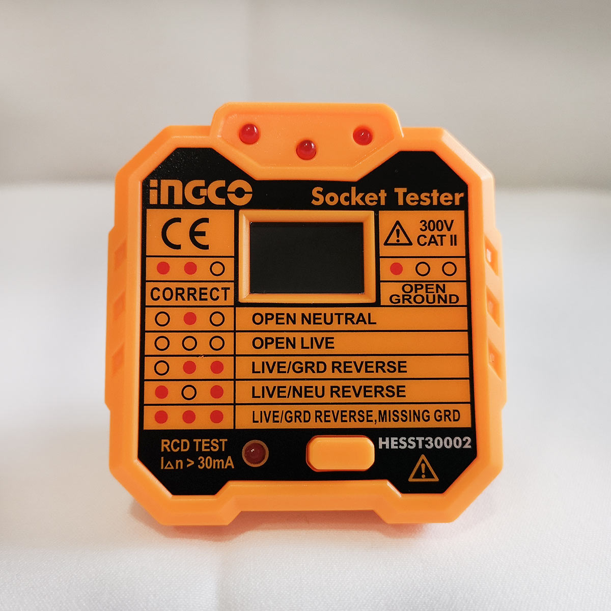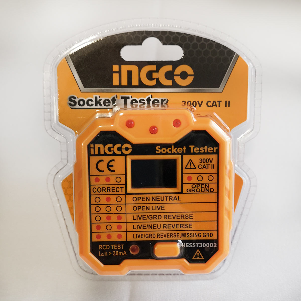 Λεπτομέρειες προϊόντοςΕύρος ελέγχου τάσης ρεύματος έως 300V AC Βύσμα VDE Υποδοχή τοποθέτησης σε σούκο Kατηγορία μέτρησης CAT II Δοκιμή ρελέ διαρροής RCD > 30mA (Αντιηλεκτροπληξιακό) Μέτρηση τάσης Επτά καταστάσεις Led ένδειξης δοκιμής: ●●○ Σωστή σύνδεση ○●○ Ανοιχτός αγωγός γείωσης ●○○ Ανοιχτός αγωγός ουδετέρου ○○○ Ανοιχτός αγωγός φάσης ○●● Φάση και γείωση αντίστροφα ●○● Φάση και ουδέτερος αντίστροφα ●●● Φάση και γείωση αντίστροφα, με απουσία αγωγού γείωσης